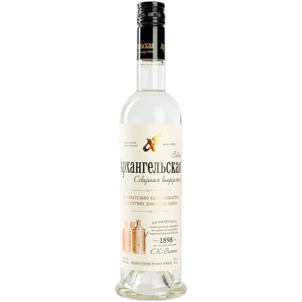 Водка Архангельская Северная Выдержка Vodka — выдержанный алкогольный напиток с глубоким, насыщенным и гармоничным характером. Основой водки служат отборный зерновой спирт и кристально чистая вода, а после дистилляции напиток выдерживается в специальных условиях — это придаёт ему дополнительные вкусовые оттенки, мягкость и структурированность, отражающие атмосферу холодного северного климата. Бренд Архангельская сочетает традиции северного ремесла и современные технологии, создавая водку с выразительным профилем и богатым характером.