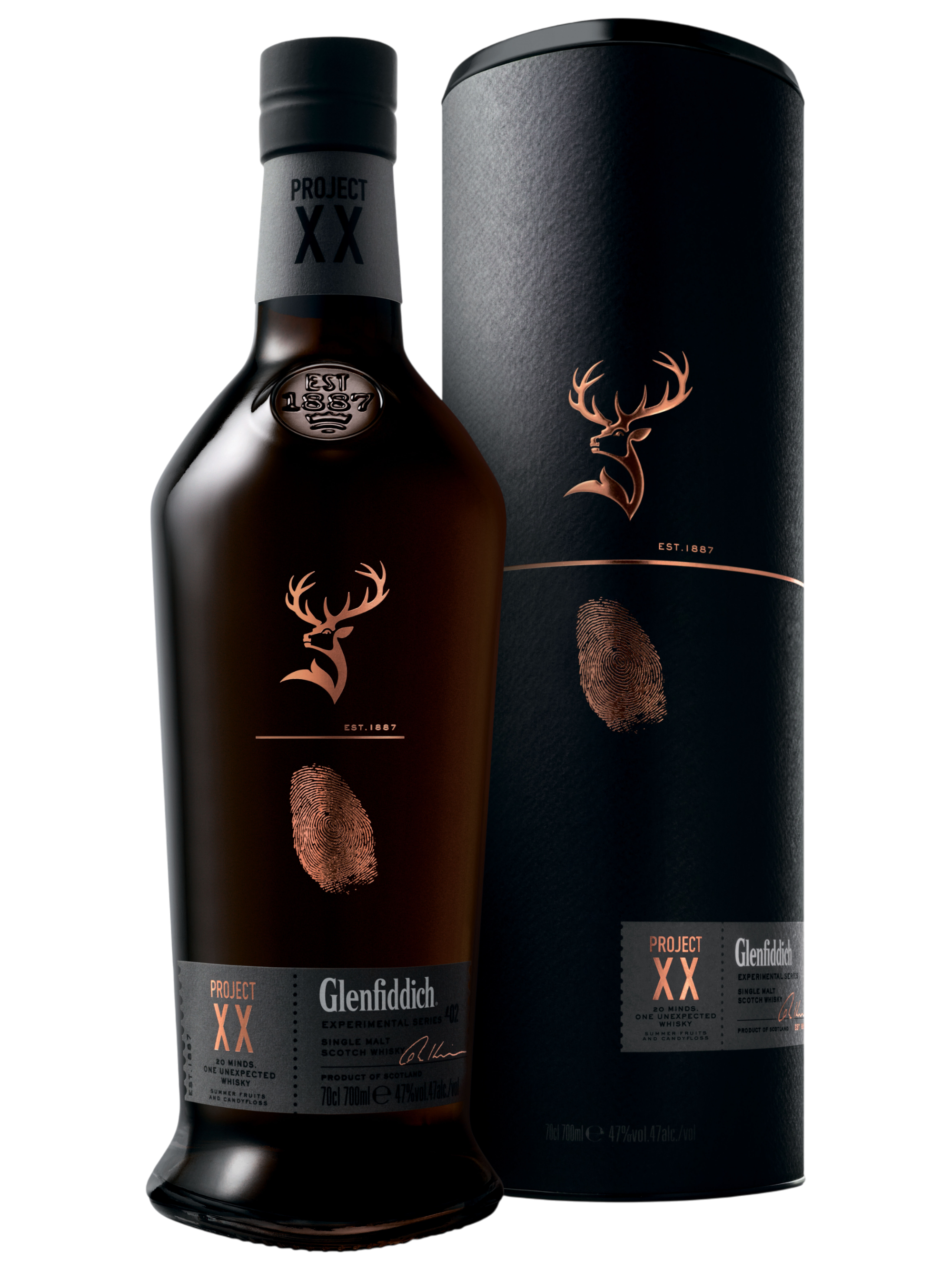 Glenfiddich, Project XX — второй релиз “Экспериментальной Серии” виски, который воплощает в себе философию свободы и возможностей, способную в полной мере выразить новаторский дух компании. Брайан Кинсман пригласил 20 лучших экспертов со всего мира, чтоб те смогли выбрать любую бочку в погребе Conval. Этот проект был настолько засекречен, что эксперты даже не знали, зачем именно были приглашены. Из более тысячи различных солодов были отобраны лучшие 20, которые были умело соединены в роскошный, уникальный виски. Брайан остался доволен: “Это был долгий процесс, но результат говорит сам за себя”.Самый известный в мире, односолодовый виски Glenfiddich создается на винокуренном заводе Glenfiddich Distillery, принадлежащем независимой семейной компании William Grant & Sons. Компания была основана Вильямом Грантом в 1886 году и сегодня его традиции продолжает уже пятое поколение семьи. Продукты William Grant & Sons известны во всём мире, они продаются более чем в 180 странах.Glenfiddich производится в Хайленде, рецепт этого напитка не менялся с самого создания, для его изготовления используется кристально чистая вода из природных источников, выдержка производится в старинных дубовых бочках, где напиток приобретает свои неповторимые характеристики. Glenfiddich постоянно подтверждает репутацию лучшего односолодового виски в мире, получая большое количество престижных профессиональных наград.