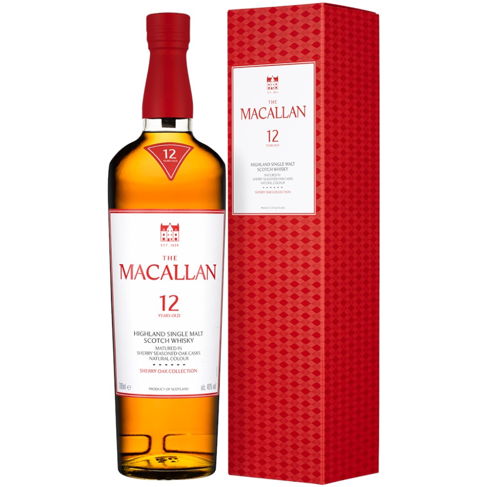 The Macallan Sherry Oak 12 Years Old — премиальный односолодовый шотландский виски, выдержанный исключительно в тщательно отобранных дубовых бочках из-под хереса. Такая выдержка формирует богатый, сложный и гармоничный характер напитка с выразительными сладкими и пряными оттенками.
