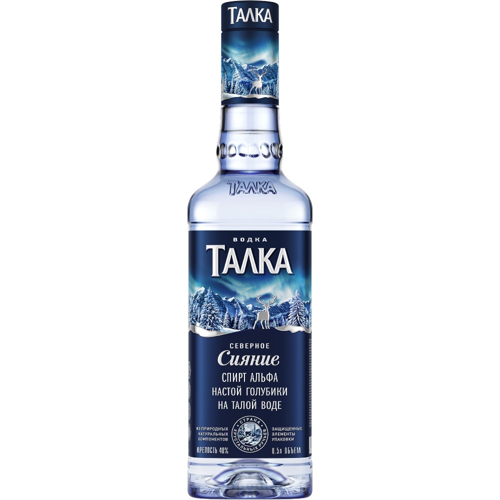 "Талка" Северное Сияние — как квинтэссенция щедрого сибирского края. В ней чувствуется все то, чем богата природа этого региона: кристальная чистота талой ледниковой воды, бодрящая свежесть морозного ясного утра и легкий привкус жемчужины сибирских лесов — ягоды голубики. Благодаря этой любимой и чтимой сибиряками ягоде, "Талка" Северное Сияние обладает характерным терпковатым послевкусием.