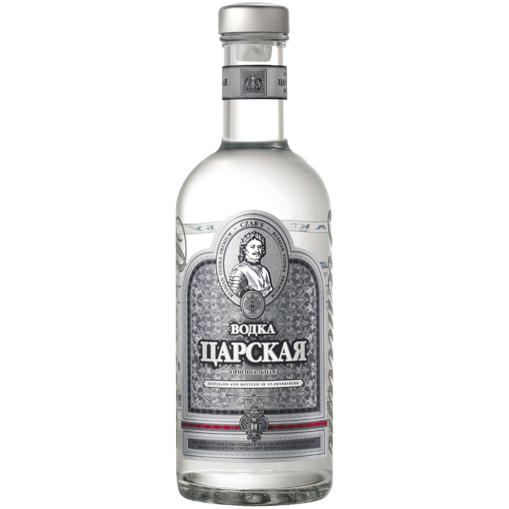 Водка "Царская" Оригинальная , ставшая первым напитком бренда "Царская", была изготовлена ограниченной партией на заводе "Ладога" в 2003-м году специально для торжественных мероприятий, проходящих в рамках празднования 300-летия Санкт-Петербурга. Водка производится из спирта класса "Люкс", изготовленного из специальных высококрахмалистых сортов пшеницы, настоя липового цвета, монофлерного липового меда и чистейшей воды из Ладожского озера, имеющего ледниковое происхождение. Многоступенчатая система очистки с использованием березового угля и серебра придает ей не только мягкий вкус, но и наделяет лечебными свойствами.