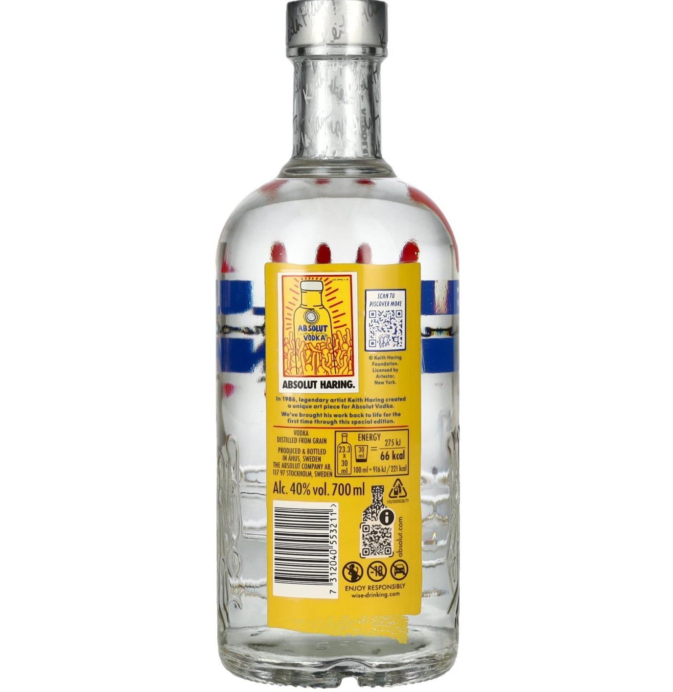 Absolut Vodka Haring — лимитированная версия классической водки Absolut в дизайнерской бутылке, оформленной по мотивам работ культового художника Keith Haring. Выпуск посвящён коллаборации бренда с миром современного искусства и отражает яркий, динамичный стиль поп-арта.